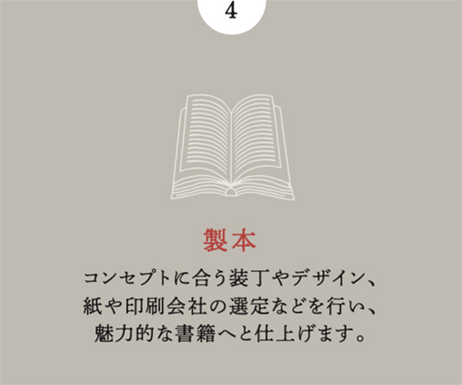 制作にあたっては時間をかけてじっくりとお話を伺い、ご自身の人生を振り返る時間もお楽しみいただきながら「大切な一冊」をお客様と一緒に創り上げます。お孫さんのために自分の人生を残してあげたい、事業を作り上げたお父様への感謝の気持ちとして贈りたい、など、大切な想いに触れる度に、単に書籍を作る以上の価値があると感じ、私自身の使命として「明志」に取り組んでいます。